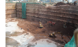 基坑工程是由地面向下开挖一个地下空间,深基坑四周一般设置垂直的挡土围护结构,围护结构一般是在开挖面基底下有一定插入深度的板(桩)墙结构;板(桩)墙有悬臂式、单撑式、多撑式。支撑结构是为了减小围护结构的变形,控制墙体的弯矩;分为内撑和外锚两种。